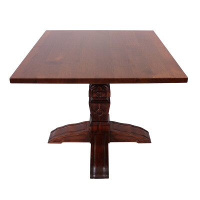 Our lovely looking Fleur De Lys 17th Century Style Twin Pedestal dining table, suitable for a pub, restaurant or hotel. It has hand carved square section pedestals with 'Fleur de Lys' decoration. The top is cleated and pegged and is 35mm thick & the standard height is 760mm. We also have similar styled tables in other sizes, such as; Fleur De Lys 900 x 900, which can be pushed together.